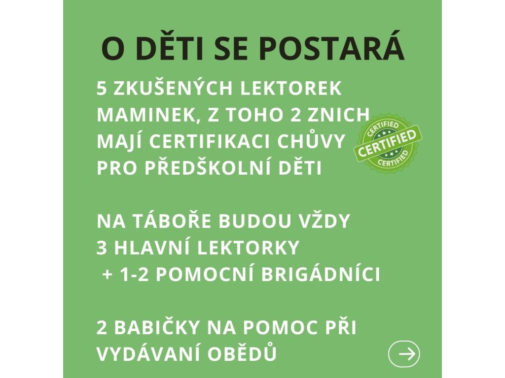Máte doma malého dobrodruha plného energie? 🚀 Dopřejte mu týden plný pohybu, zábavy, nezapomenutelných zážitků a objevování přírody! 🌍🌿 Na našem táboře si děti najdou nové kamarády, užijí si spoustu her a dozvědí se zajímavosti o lese a jeho tajemstvích.