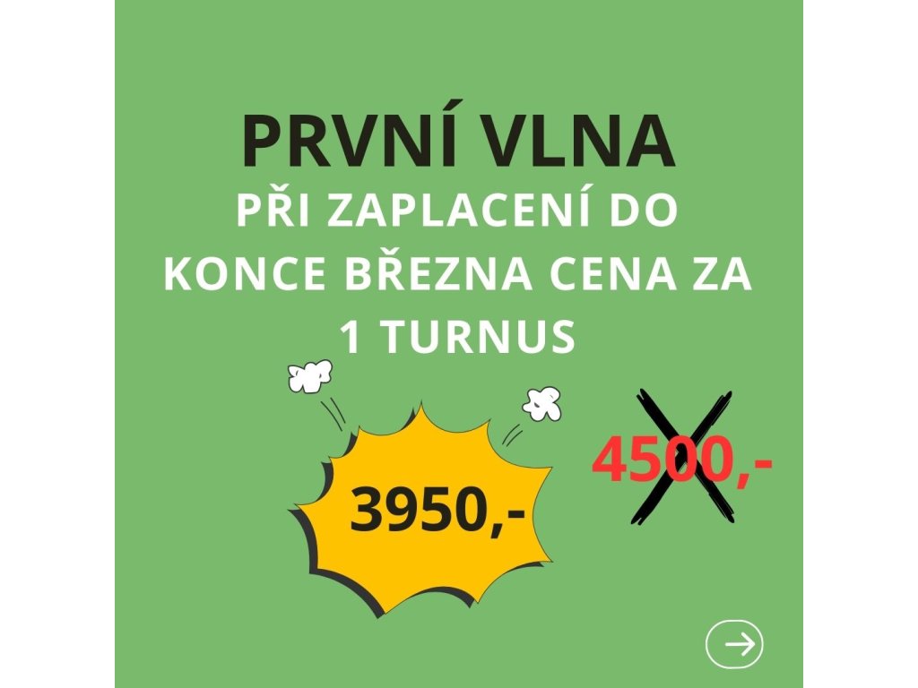 💳 Platba: Po vytvoření objednávky vám do mailu pošleme platební údaje, prosíme do konce března o úhradu, kterou potvrdíte váš vážný zájem, v případě naplnění kapacity dáme přednost účastníkům, kteří budou mít zaplaceno, děkujeme za pochopení.